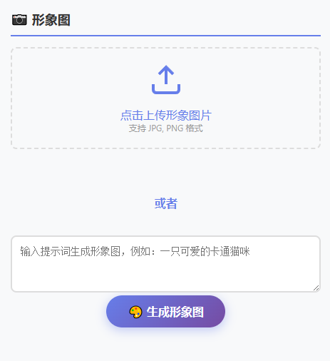 开发一个表情包生成页面。用户上传形象图或者通过提示词生成形象图,然后根据形象图生成表情包。